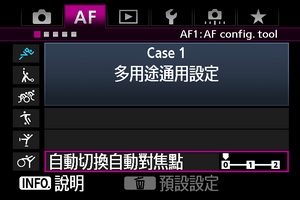 自動對焦設定工具中的三個人工智能伺服自動對焦參數