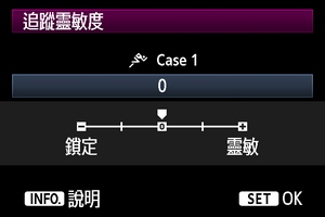 當原來的主體離開自動對焦點或的其他主體、背景進入自動對焦點時,設置自動對焦系統應如何繼續追蹤原來主體的參數。