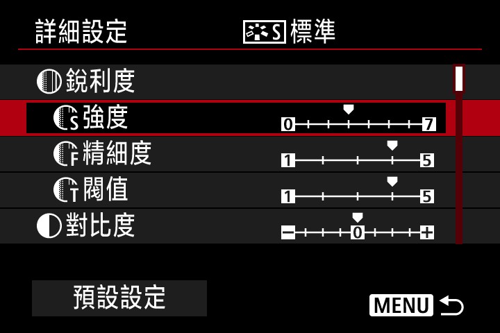 相片風格的銳利度設定新增「精細度」(Fineness)及「閥值」(Threshold) 選項以微調銳利效果。