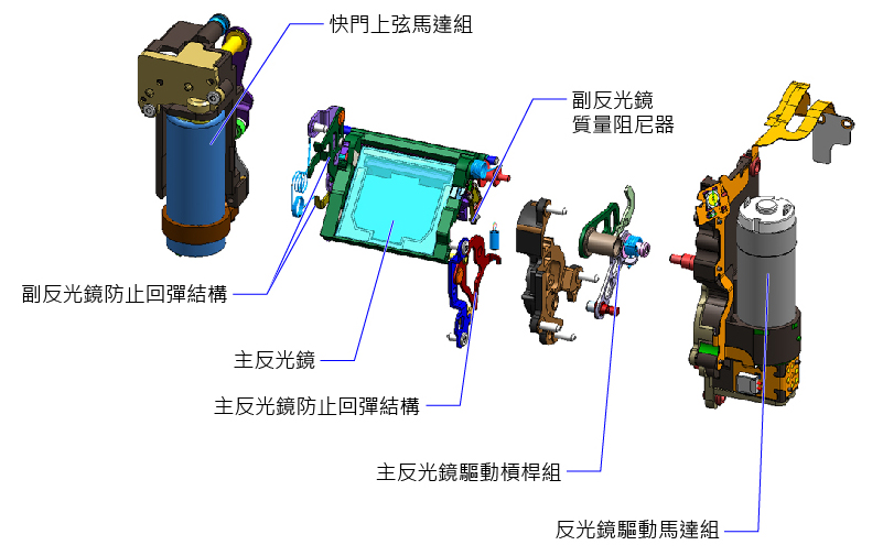 2. 主反光鏡及副反光鏡均加入防止回彈裝置以立即吸收回彈
