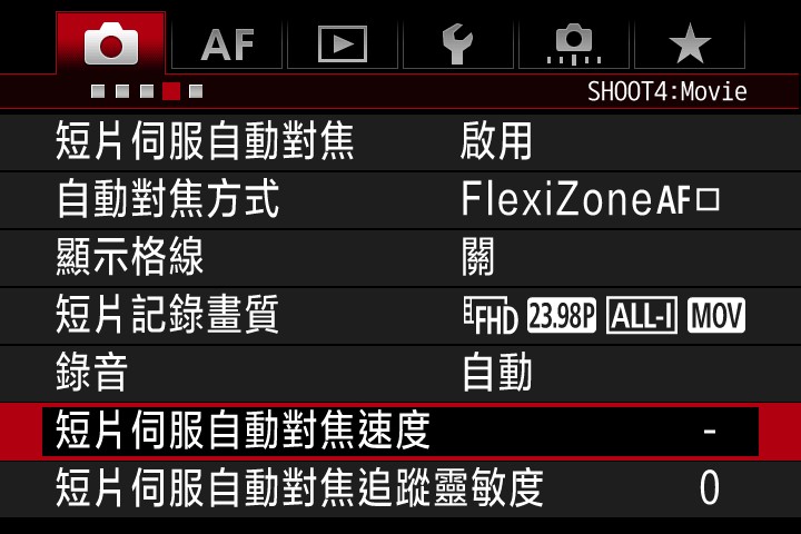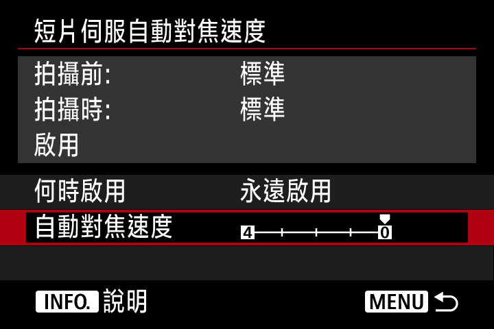 自訂短片伺服自動對焦速度 – 專業調焦效果