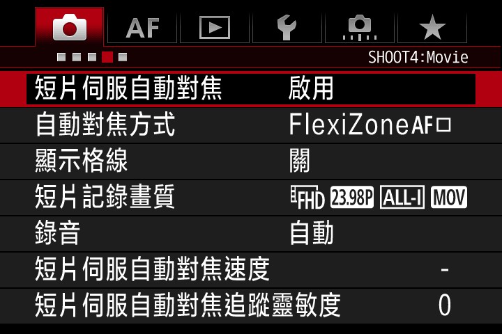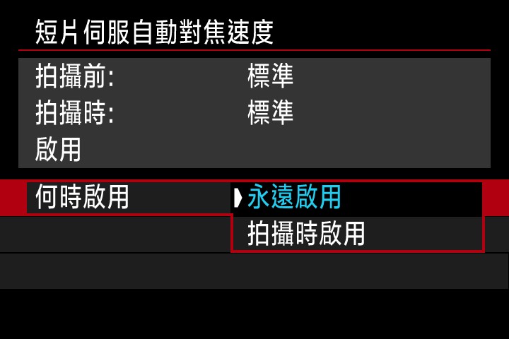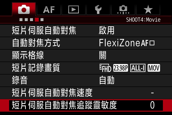 自訂短片伺服自動對焦追蹤靈敏度 – 設定自動對焦反應