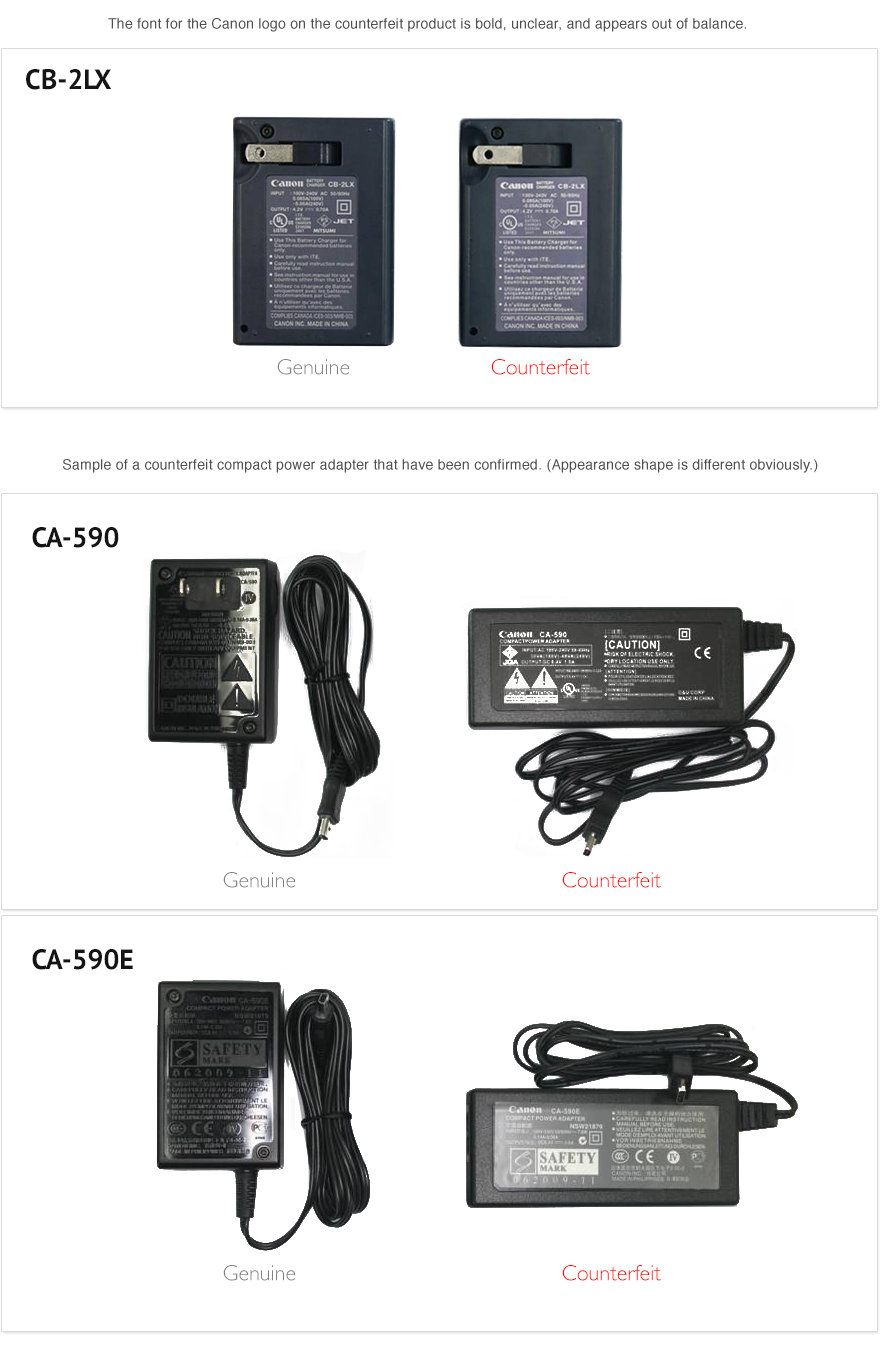Sample of a counterfeit battery charger & power adapter