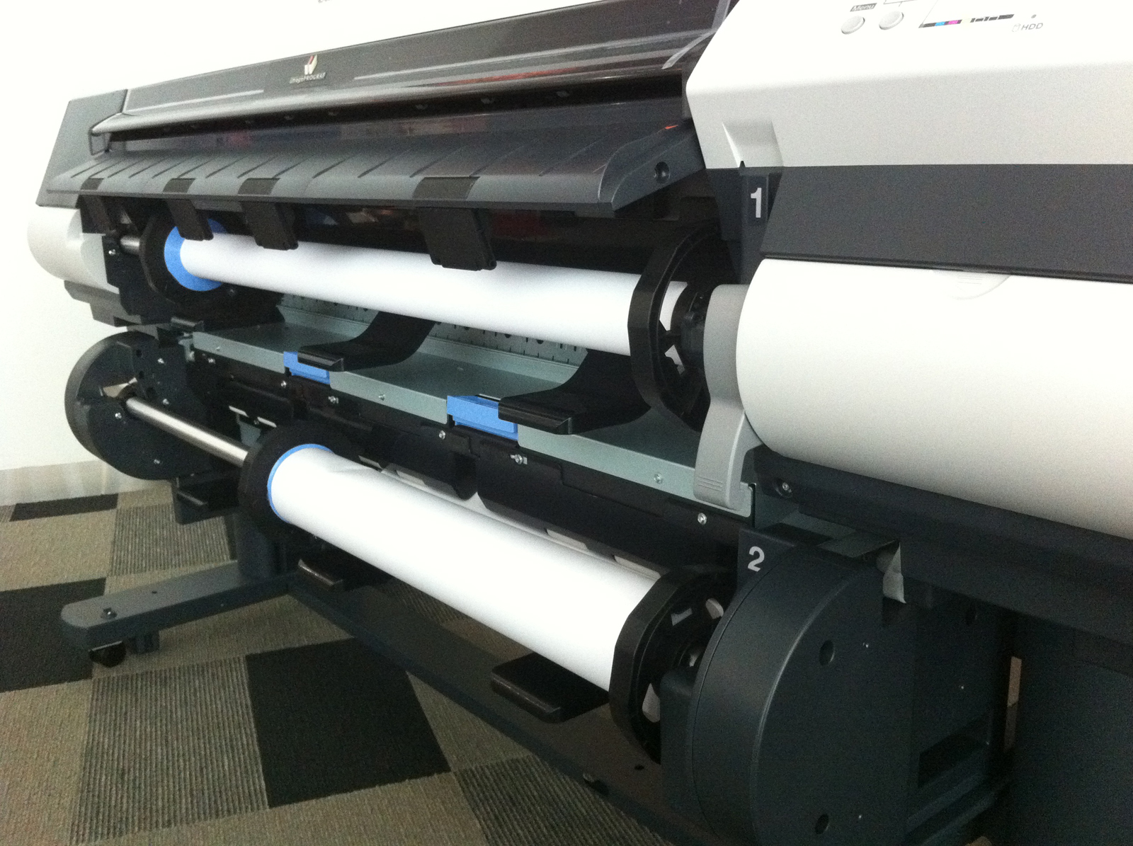 iPF851配備創新雙卷筒供紙系統,可盛載兩種相同或不同尺寸的捲紙,並自動根據各種打印用途高速換紙,令打印更具效率。另外,用家也可於驅動程式中選取要打印的捲紙。 |