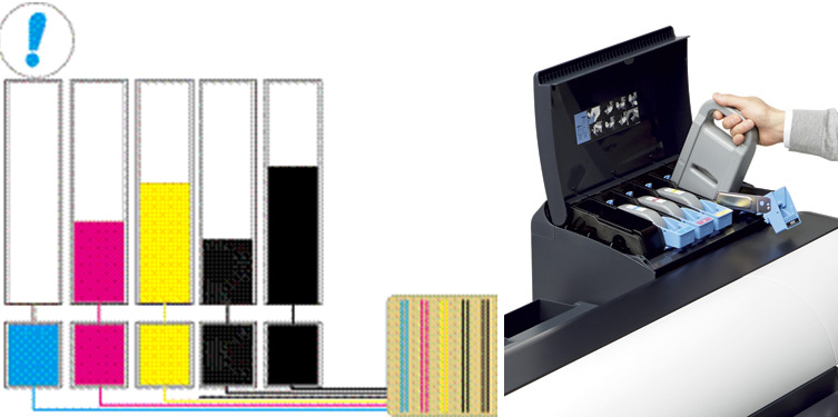 佳能獨有”快速轉換” 墨盒在毋須停機情況下更換墨盒。如果主墨盒墨水已用完,子墨槽會繼續供應墨水。除了方便高用量用家的業務需求外,亦確保充份利用墨水,避免浪費。 |