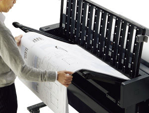 iPF851配備高容量堆疊器,其平面輸出器於打印時節省了操作員的處理時間。為提高生產效率,更可儲存高達100張不同大小的列印品。 |