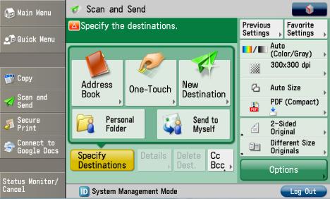 In just one step, user can send a document to one or up to 256 destinations, including email, fax, Internet fax and folder. |
