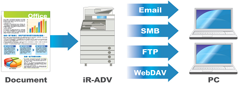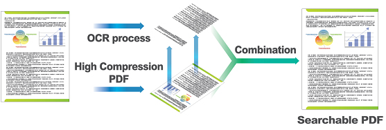 Canon's High Compression PDF function can compress PDF file size to 1/10 of its original for network burden reduction and faster Send and Store operations. |