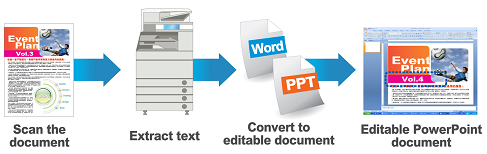When scanning documents, OCR technology can convert paper-format documents to PowerPoint and Word file. User can extract the text in both the scanned document of PowerPoint & Word file. |